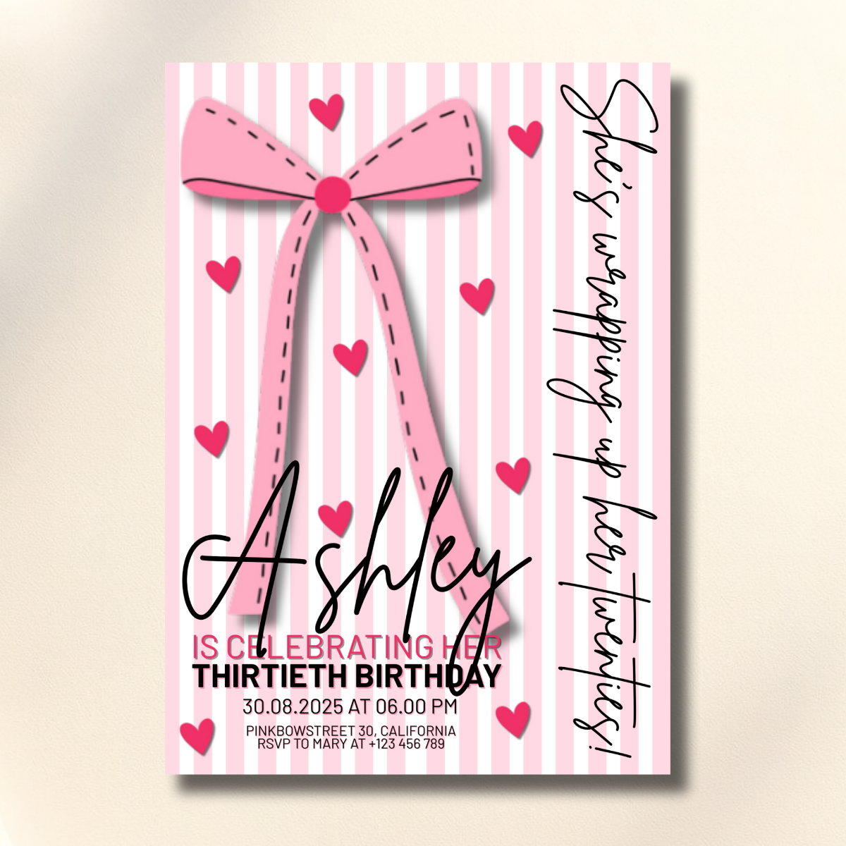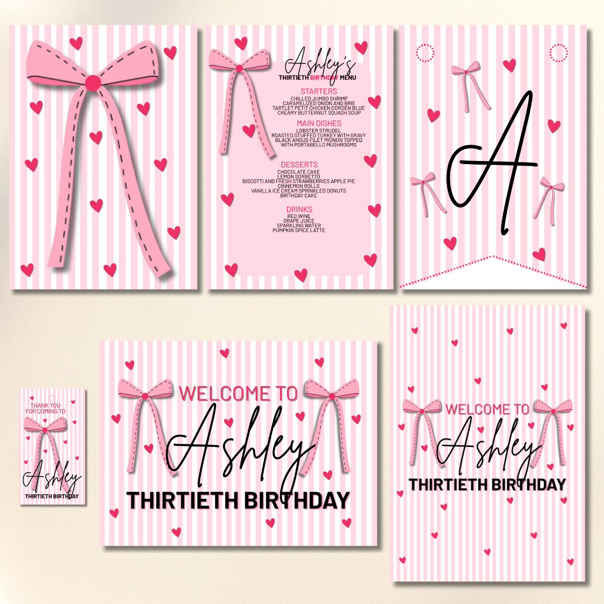 Celebrate turning thirty in style with this Pink Coquette Bow Birthday Canva Set, a perfect blend of soft femininity and modern elegance. Designed with delicate pink bows, chic typography, and a timeless coquette aesthetic, this complete party stationery set is ideal for a 30th birthday soirée, brunch, or cocktail celebration.