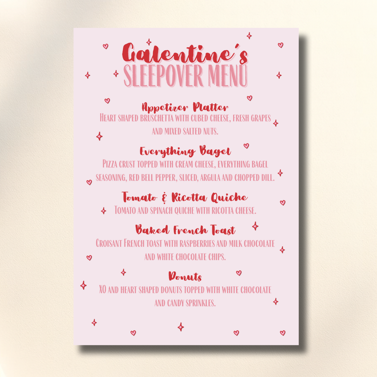 Plan the ultimate cozy night in with the Galentine’s Girls Sleepover Event Canva Set. Designed for fun-filled evenings with your favorite girls, this set is perfect for Galentine’s Day sleepovers, pajama parties, movie nights, or relaxed girls’ night celebrations.